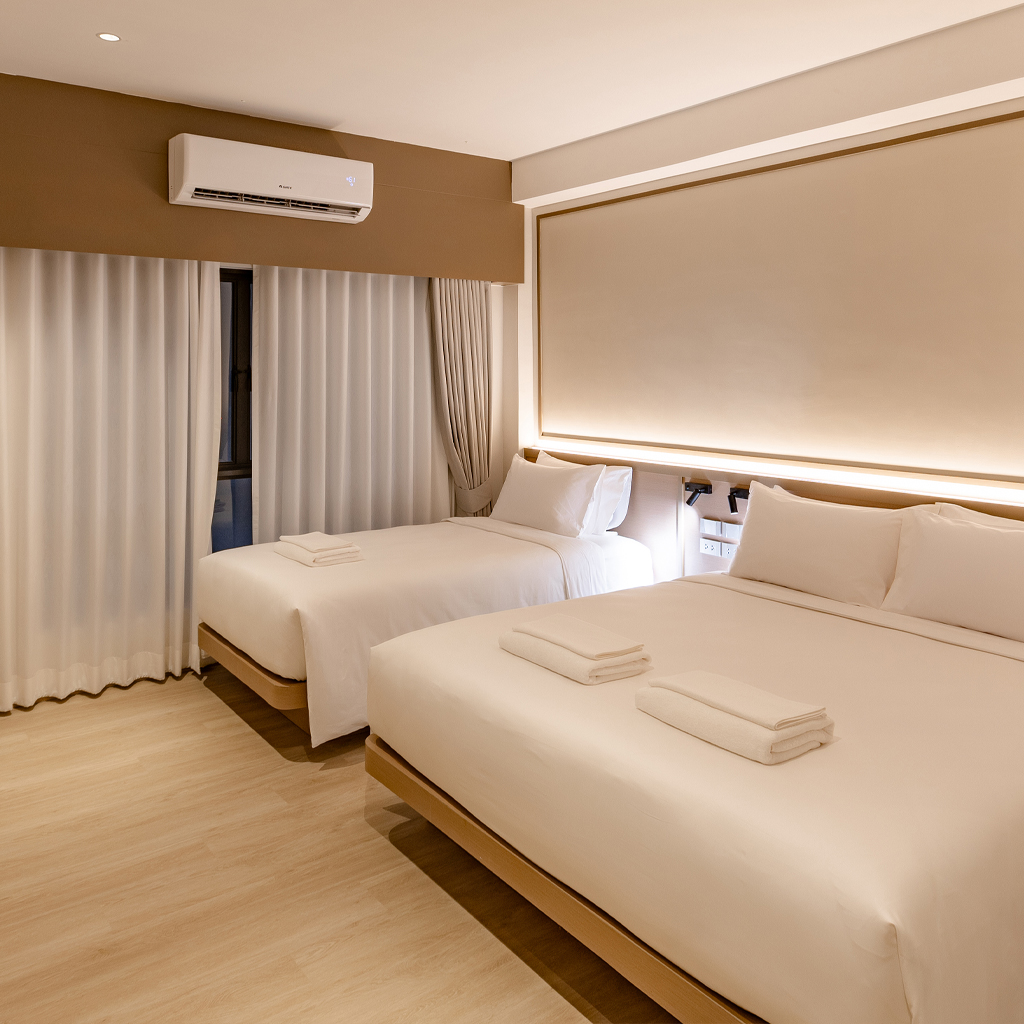 Our hotel is perfectly located in the heart of Bangkok’s vibrant Pratunam district — one of the city’s most popular shopping areas. Guests can easily walk to top attractions such as Platinum Fashion Mall, CentralWorld, and Siam Paragon. Convenient transportation options are nearby, including the BTS Skytrain and Airport Rail Link. Each room is thoughtfully designed to offer a warm, modern, and relaxing atmosphere, equipped with full amenities to ensure a comfortable stay for both leisure and business travelers seeking the best city-center experience.